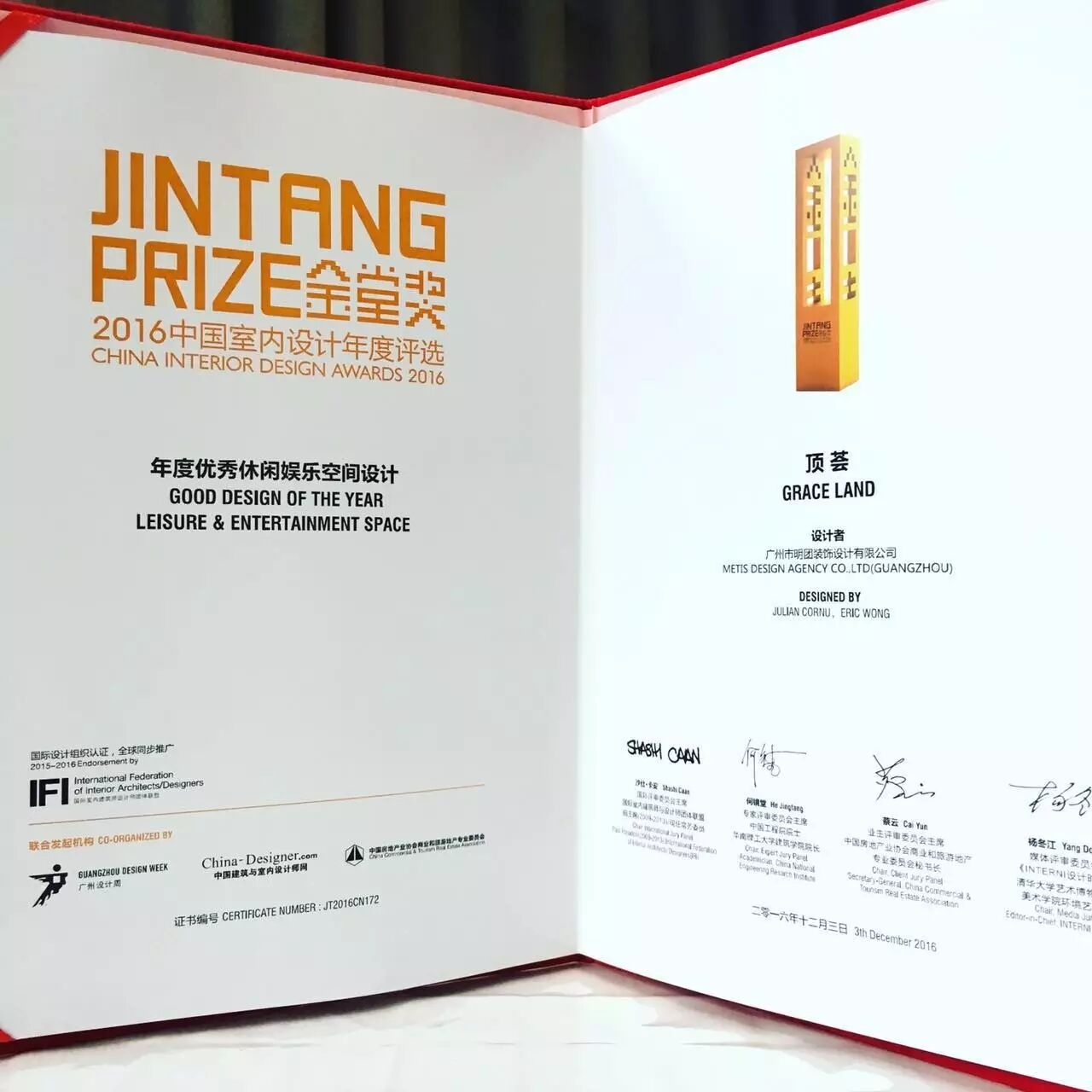 隨後進入金堂獎2016休閒娛樂空間設計的評選中,我們明團設計機構項目【頂薈】在本次金堂獎上獲得年度優秀作品。
